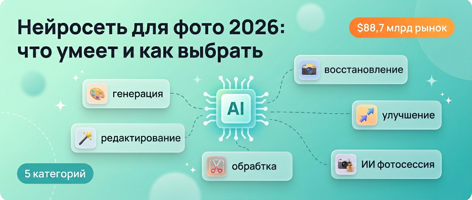 Нейросеть для фото: 5 категорий сервисов, бесплатные и онлайн-варианты, сравнение с программами. 76% бизнесов снизили расходы на визуал на 80%+.