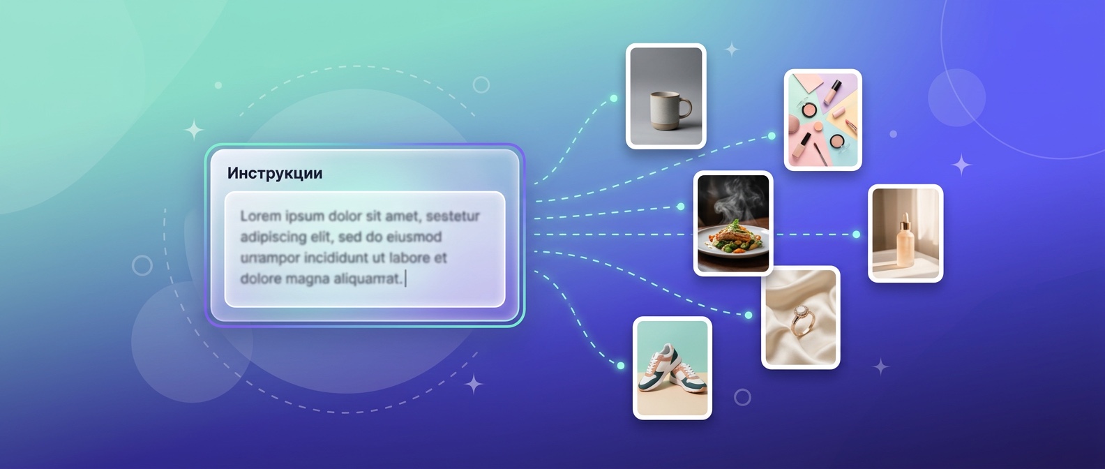 12 готовых промтов для ИИ фотосессии товаров: студия, лайфстайл, flatlay, еда, косметика, украшения. Скопируй шаблон в СамСфоткал — получи кадр за 40 секунд.