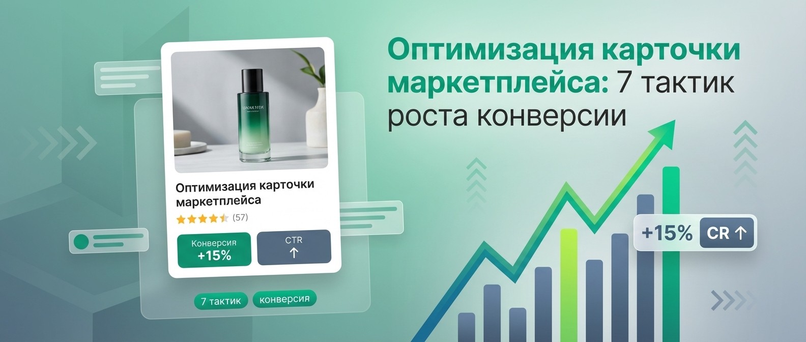 Средняя конверсия карточки на маркетплейсе 3–7%, у лидеров до 15%. 7 тактик оптимизации для повышения конверсии: фото, видео, SEO, отзывы, A/B-тесты.